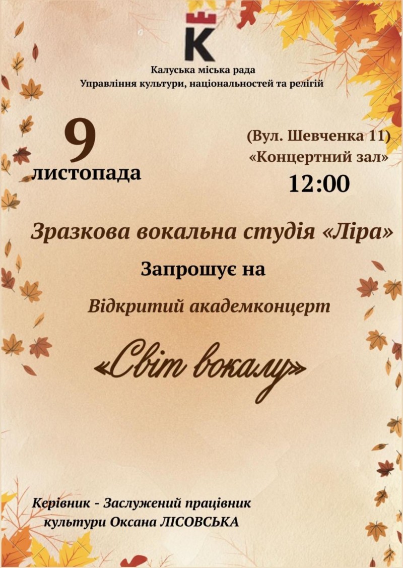 О 12.00 у Концертному залі відбудеться відкритий класний академконцерт ЗВС «Ліра».