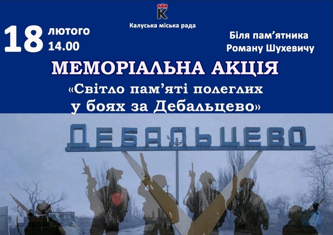Запрошуємо мешканців Калуської громади долучитися до меморіальної акції та спільно згадати тих, хто поклав своє життя у боях на Дебальцівському плацдармі.