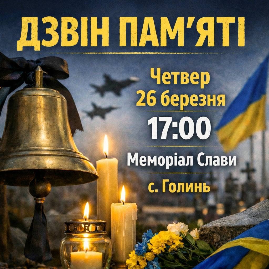 У селі Голинь Калуської територіальної громади відбудеться традиційний пам’ятний захід «Дзвін пам’яті», присвячений Героям, які віддали своє життя за свободу, незалежність і майбутнє України.