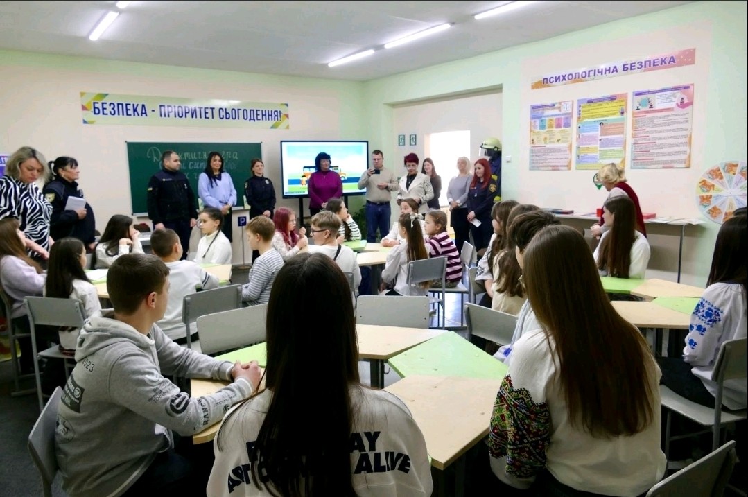Першими відвідувачами нового Класу безпеки стали учні 4-го та 7-го класів. Восьмикласники підготували презентацію тематичних осередків навчального простору, продемонструвавши його можливості.