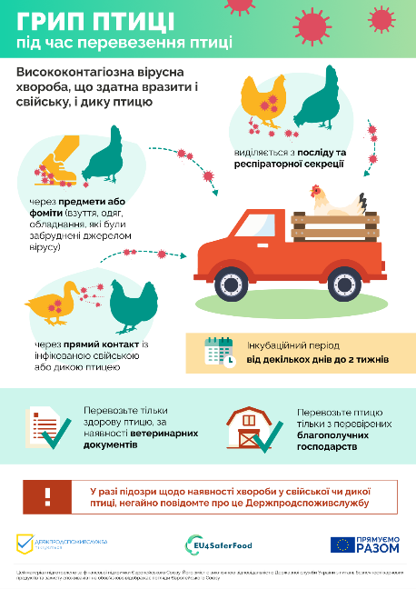 При транспортуванні свійської птиці варто дотримуватись простих правил біобезпеки для захисту інфікування поголів’я грипом птиці, а саме: