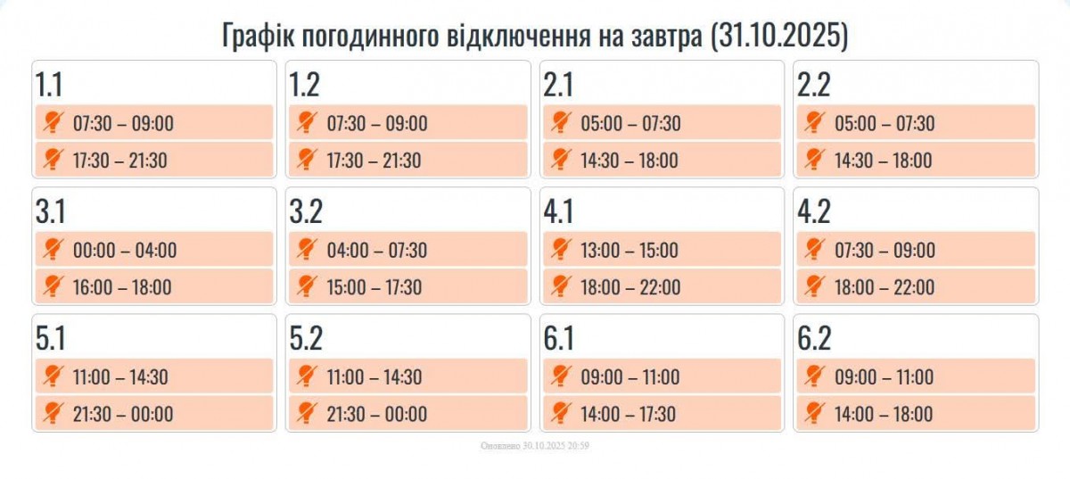 Завтра, 31 жовтня, через складну ситуацію в енергосистемі по всій Україні, зокрема на Прикарпатті, будуть діяти графіки обмеження споживання.