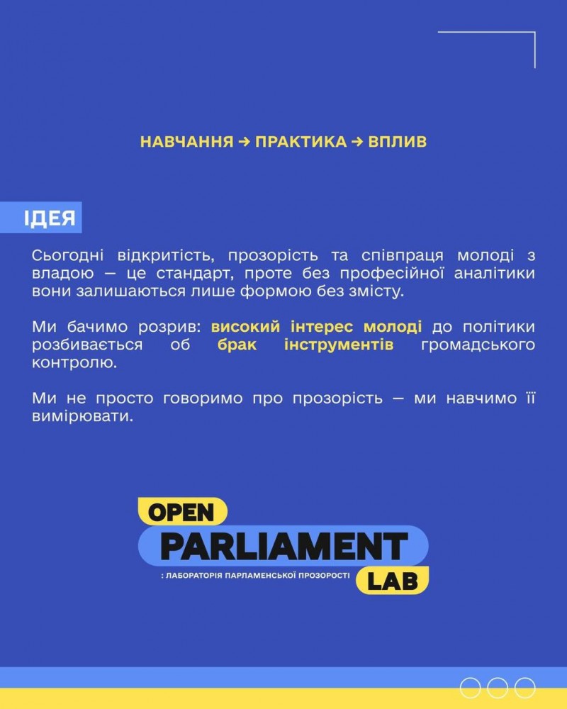 залучення до постійно діючої молодіжної лабораторії парламентської прозорості.