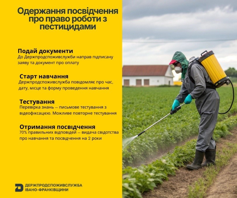 - Головне управління Держпродспоживслужби в Івано-Франківській області після отримання свідоцтва про проходження навчання з питань безпечного поводження з пестицидами.