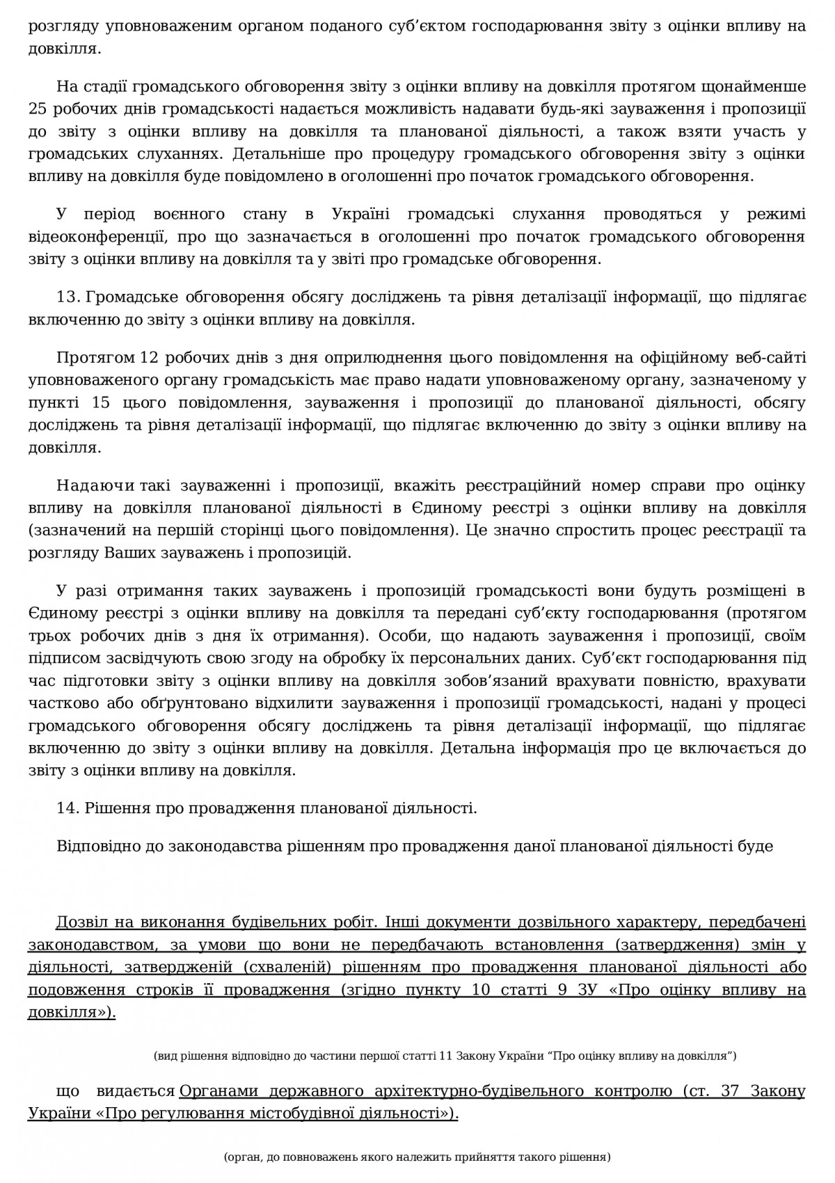 Повідомлення про плановану діяльність, яка підлягає оцінці впливу на довкілля ТОВ «РУТЕСІЛ»