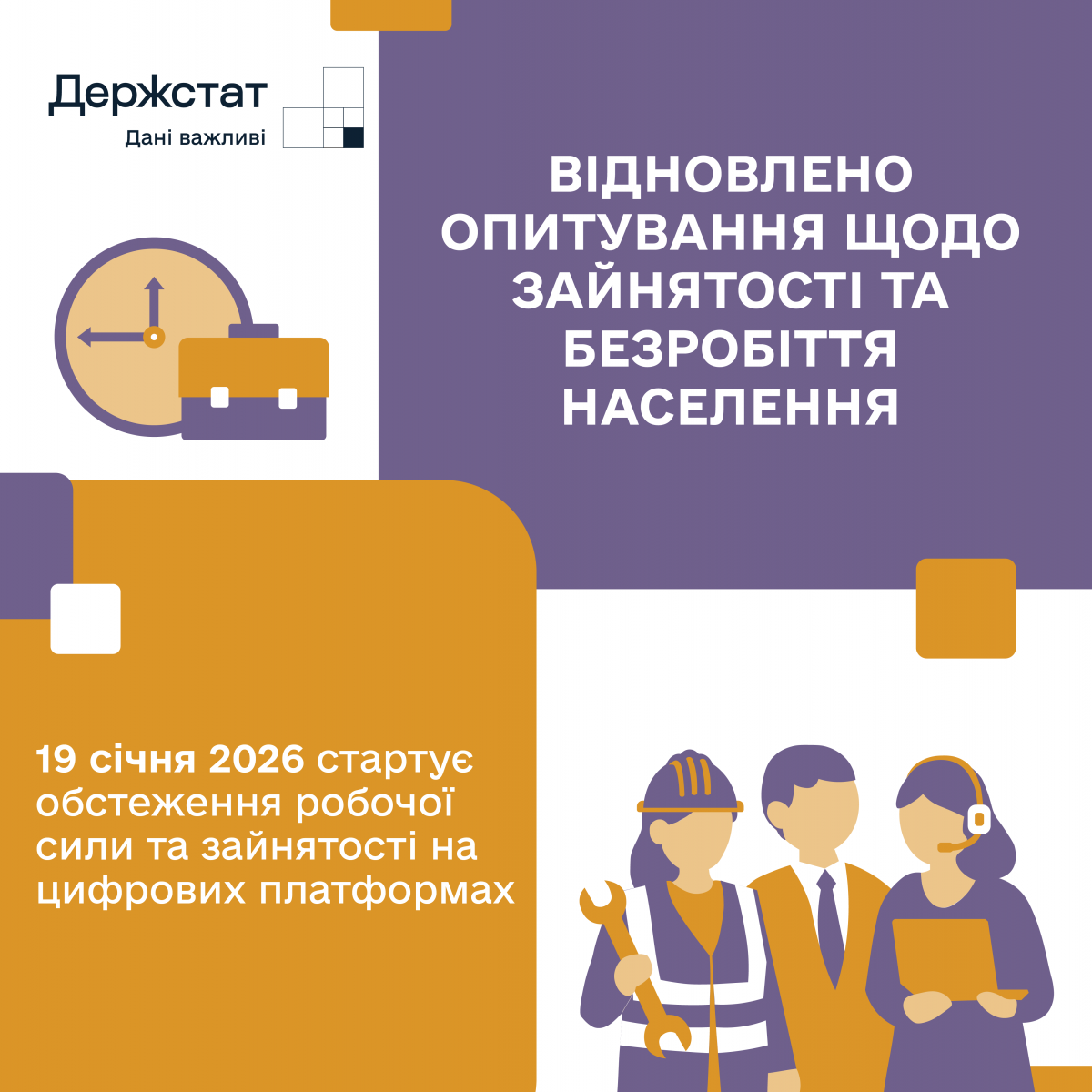 «У грудні 2025 року ми відновили опитування населення, розпочавши з обстеження бюджетів домогосподарств. У січні 2026-го переходимо до наступного важливого етапу – обстеження робочої сили. За кожною відповіддю – реальний досвід українців, і саме з цих відповідей складається розуміння того, як змінилася активність людей на ринку праці у різних регіонах. Ми вдячні родинам, які долучаться до опитування, адже їхня участь допоможе визначити, де підтримка потрібна найбільше і які зважені рішення уряду щодо соціально-економічного розвитку країни та регіонів мають бути пріоритетними».