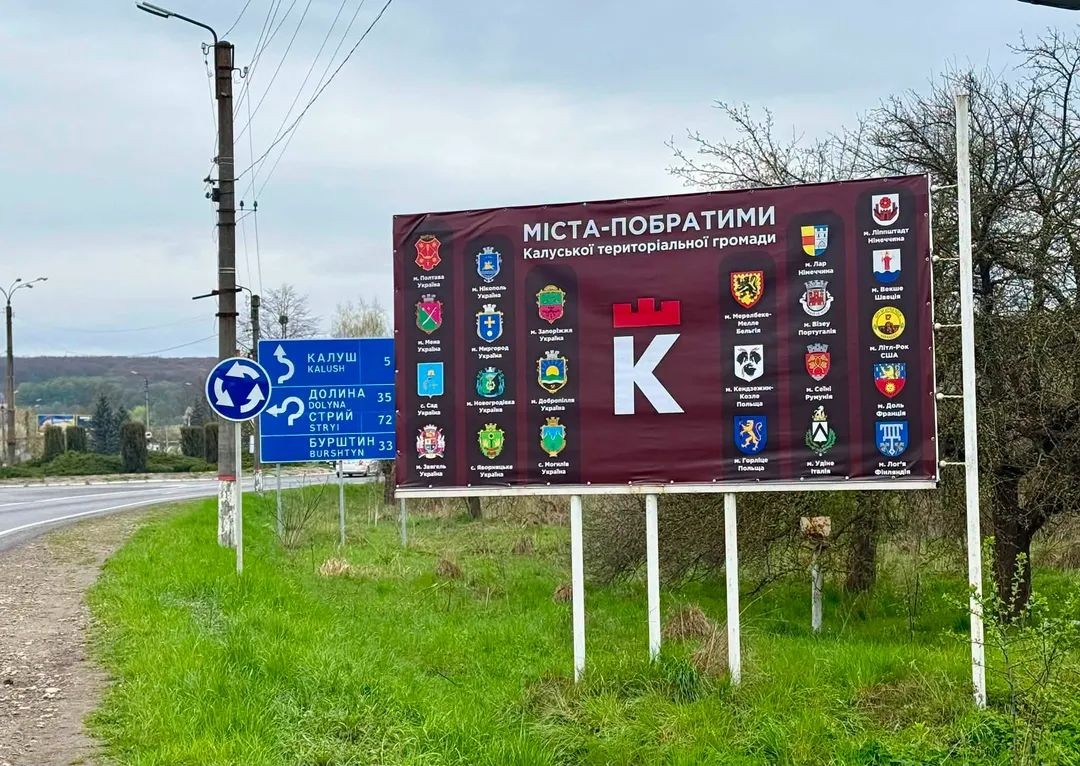 При в’їзді до Калуша, у мікрорайоні Підгірки, погляд мешканців та гостей міста тепер зустрічає оновлений білборд – візуальне втілення нашої дружби та солідарності з великим світом. На білборді закарбовані 23 герби міст-побратимів, які крокують пліч-о-пліч із Калуською громадою.