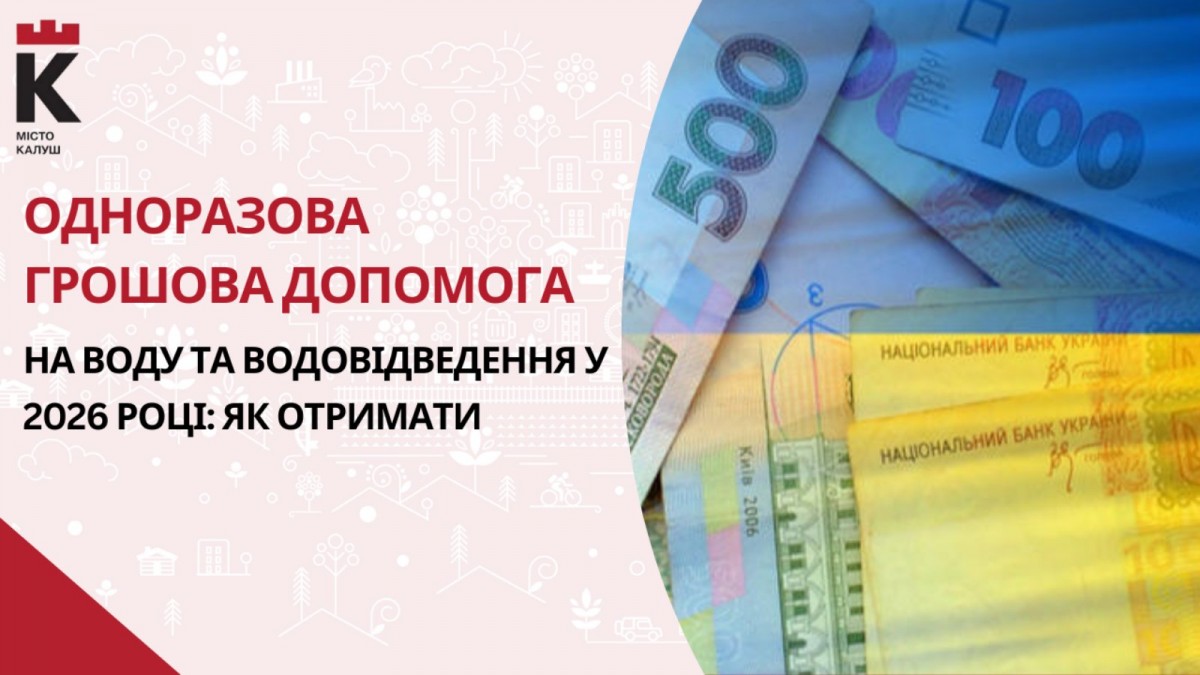 - Одноразові грошові допомоги для часткового покриття витрат на оплату послуг з централізованого водопостачання та централізованого водовідведення для жителів Калуської міської територіальної громади, надаються: