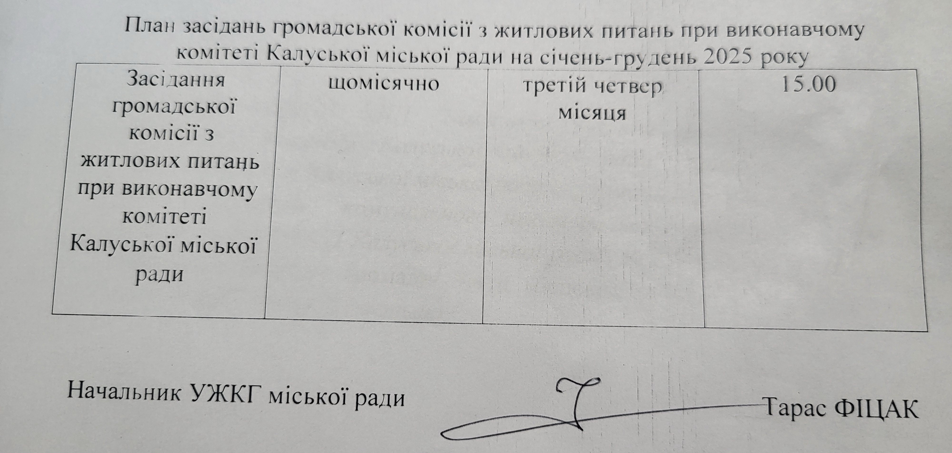• План засідань громадської комісії з житлових питань при виконавчому комітеті Калуської міської ради на січень-грудень 2025 року