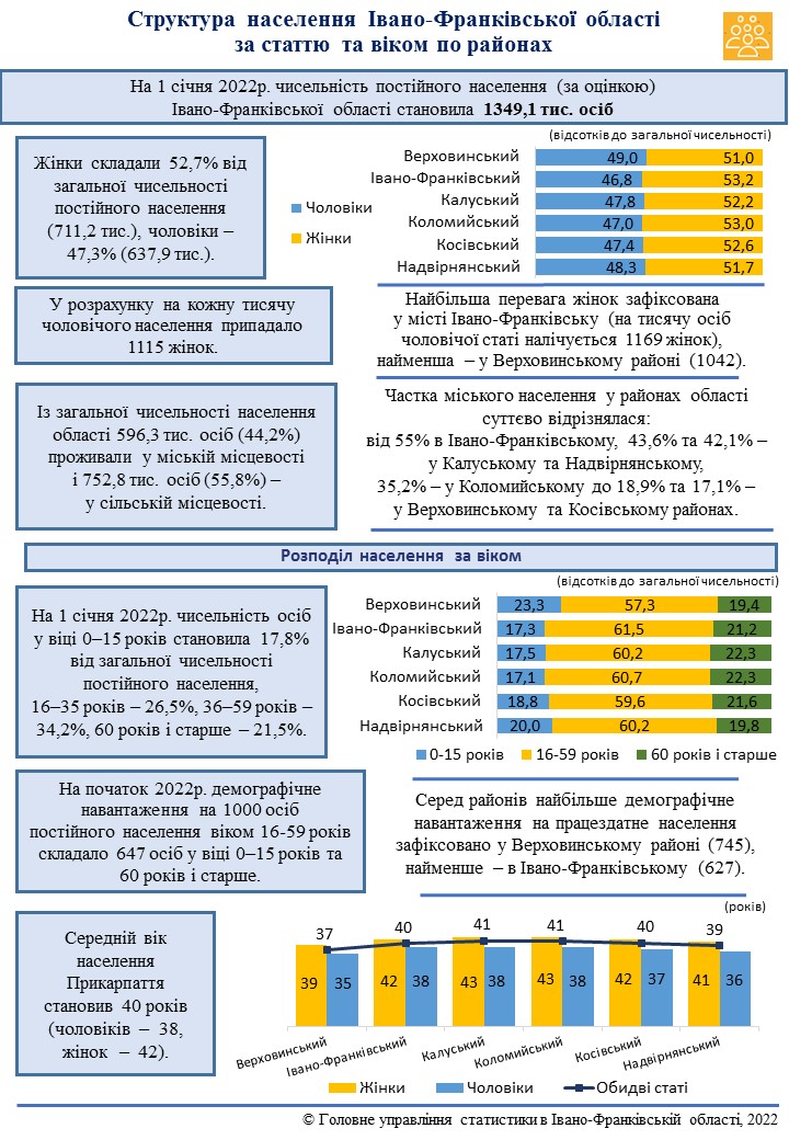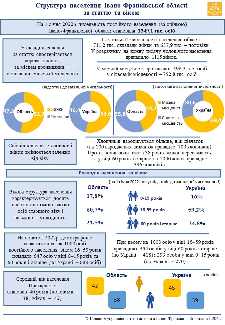 • Інфографіка. Структура населення Івано-Франківської області за статтю та віком