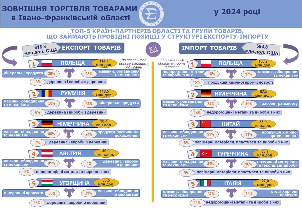 • Зовнішня торгівля товарами Івано-Франківської області у січні березні 2025 року»