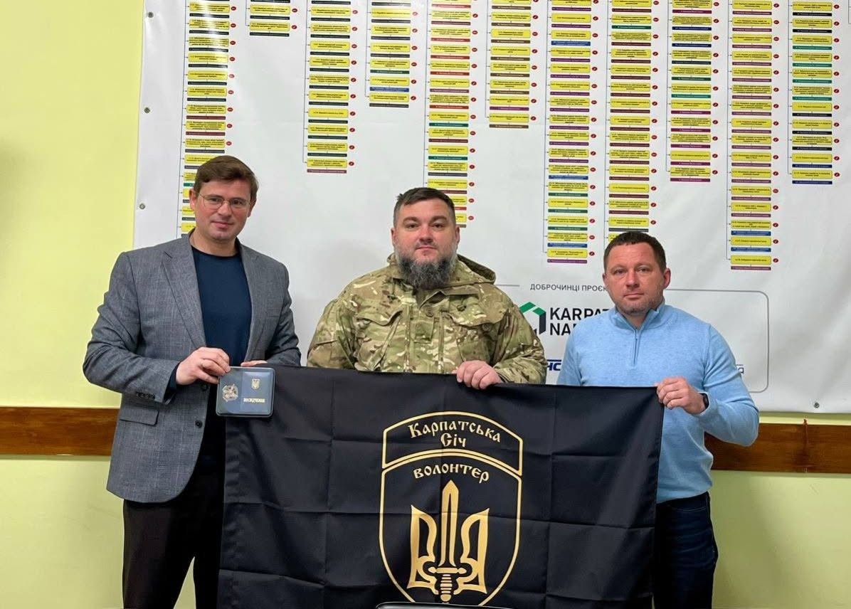 Міський голова Калуша Андрій Найда і секретар Калуської міської ради Віктор Гільтайчук 17 листопада провели зустріч з офіцером 49-го окремого штурмового батальйону «Карпатська Січ» Русланом Андрійком.