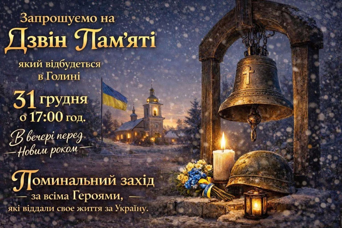 У селі Голинь відбудеться поминальний захід «Дзвін Пам’яті», присвячений вшануванню Героїв, які віддали своє життя за незалежність України.