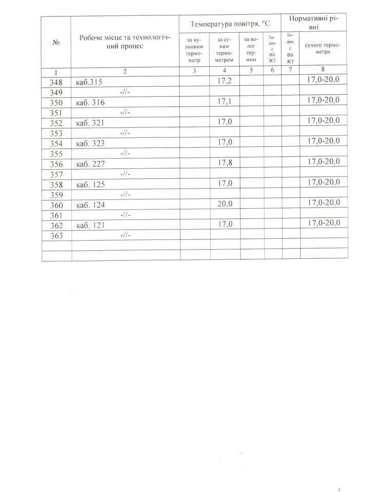 температура повітря в навчальних кабінетах становить від 17°С до 20°С при нормативі 17–20°С;