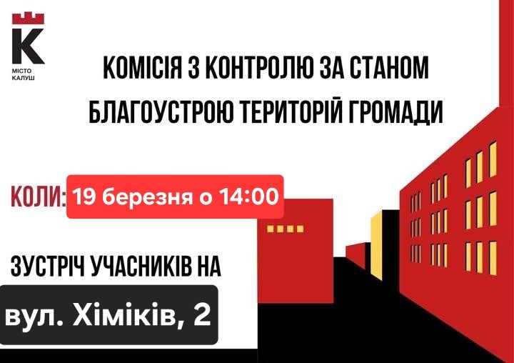 У четвер, 19 березня, у місті працюватиме постійно діюча комісія з контролю за станом благоустрою територій Калуської міської територіальної громади