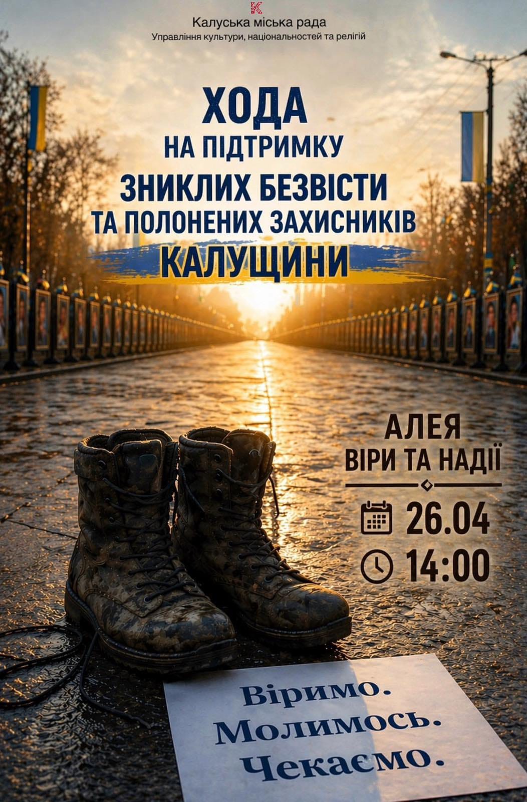 У Калуші відбудеться хода на підтримку зниклих безвісти та полонених Захисників Калущини.