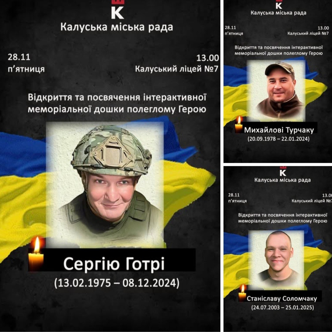 У Калуші відбудеться урочисте відкриття та посвячення інтерактивних меморіальних дощок, створених на честь полеглих Героїв, чия відвага та відданість Україні назавжди залишаться у нашій пам’яті: