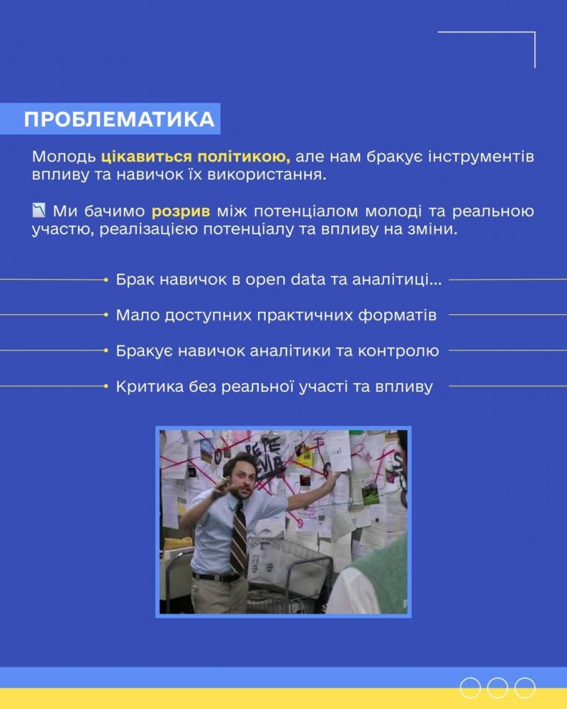 Участь у проєкті — гарна можливість проявити себе, набути важливого для подальшої професійної діяльності досвіду, познайомитися з однодумцями з усієї України, взяти участь у розробці аналітичних кейсів, а що найважливіше — дізнатися, як працює Верховна Рада України зсередини.