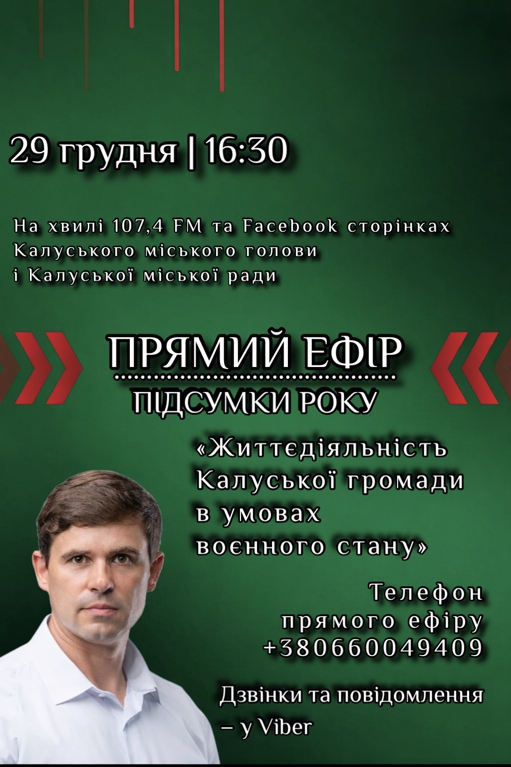 29 грудня, в понеділок, на хвилі 107,4 FM відбудеться прямий ефір з міським головою Калуша Андрієм Найдою. Початок о 16:30.