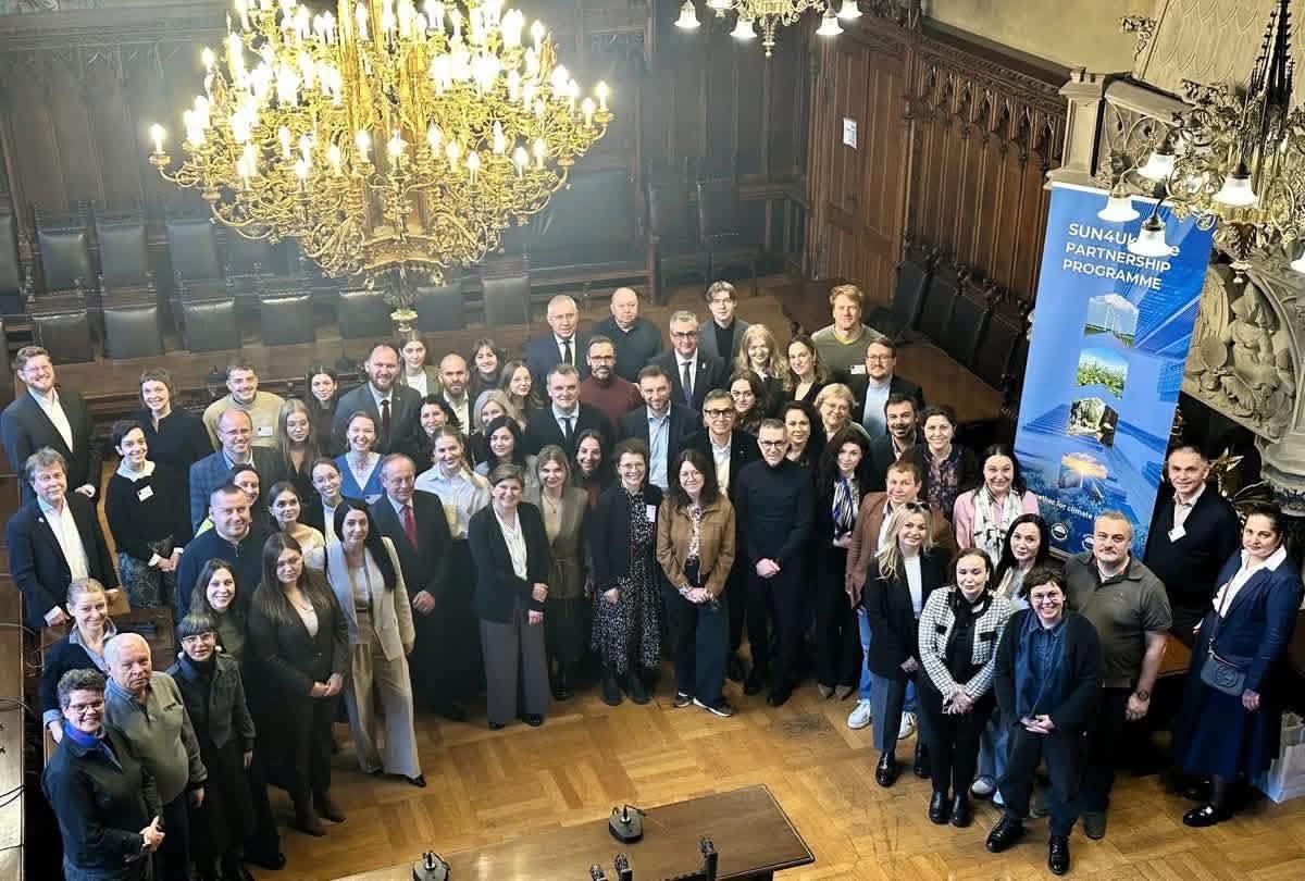 З 17 по 21 листопада у Мюнхені відбулася перша установча зустріч партнерської програми SUN4Ukraine, яка об’єднує українські флагманські муніципалітети з європейськими містами для спільної роботи над питаннями кліматичної стійкості, інновацій та енергетичного переходу.