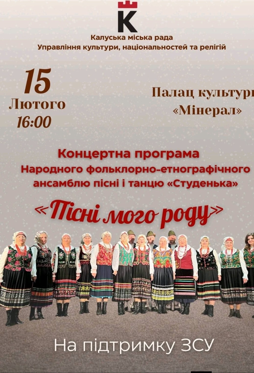 - 16:00 — концетна пограма народного фольклорно-етнографічного фестивалю пісні і танцю "Студенька" на підтримку ЗСУ, ПК "Мінерал".