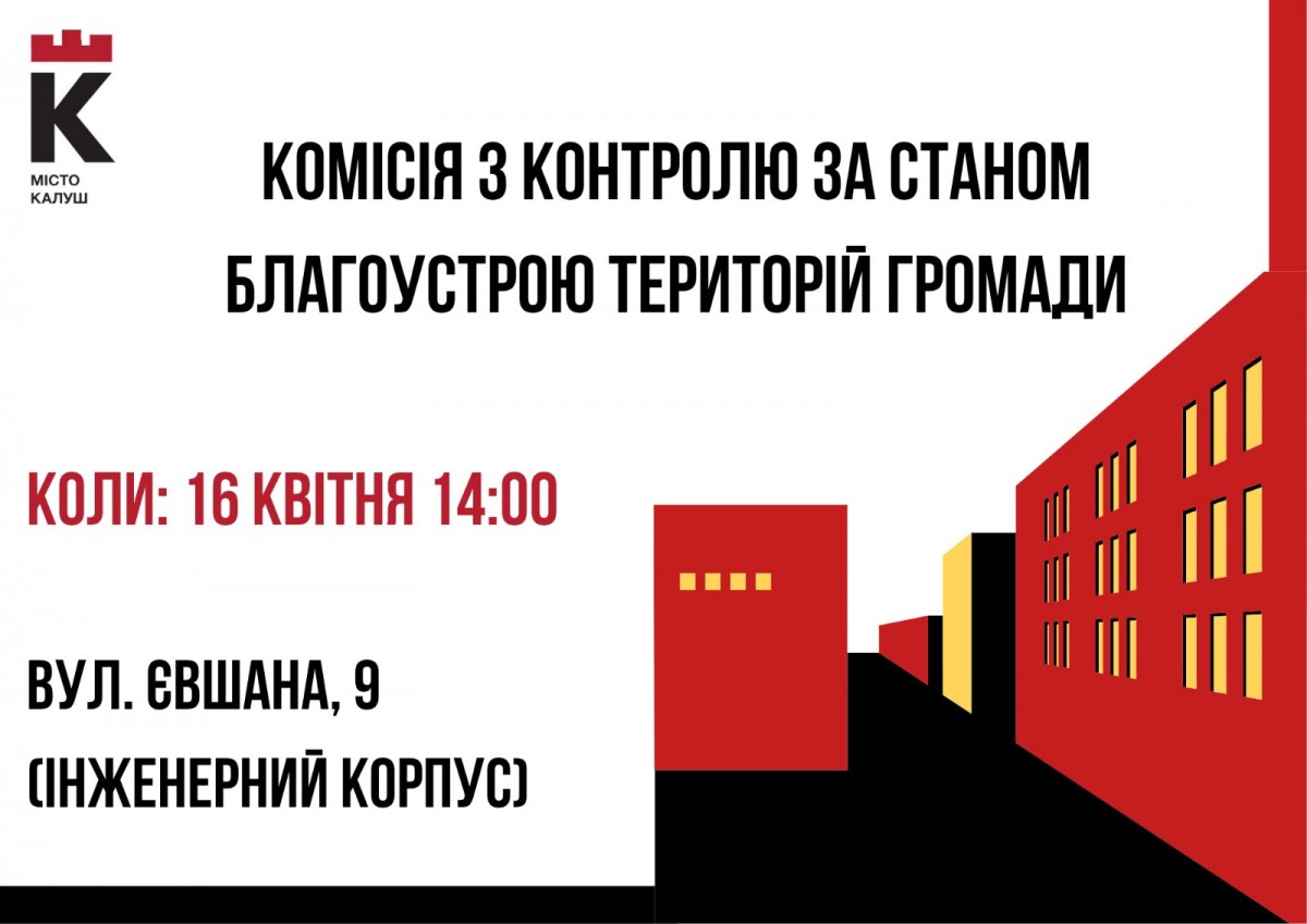 У четвер, 16 квітня, у місті працюватиме постійно діюча комісія з контролю за станом благоустрою територій Калуської міської територіальної громади