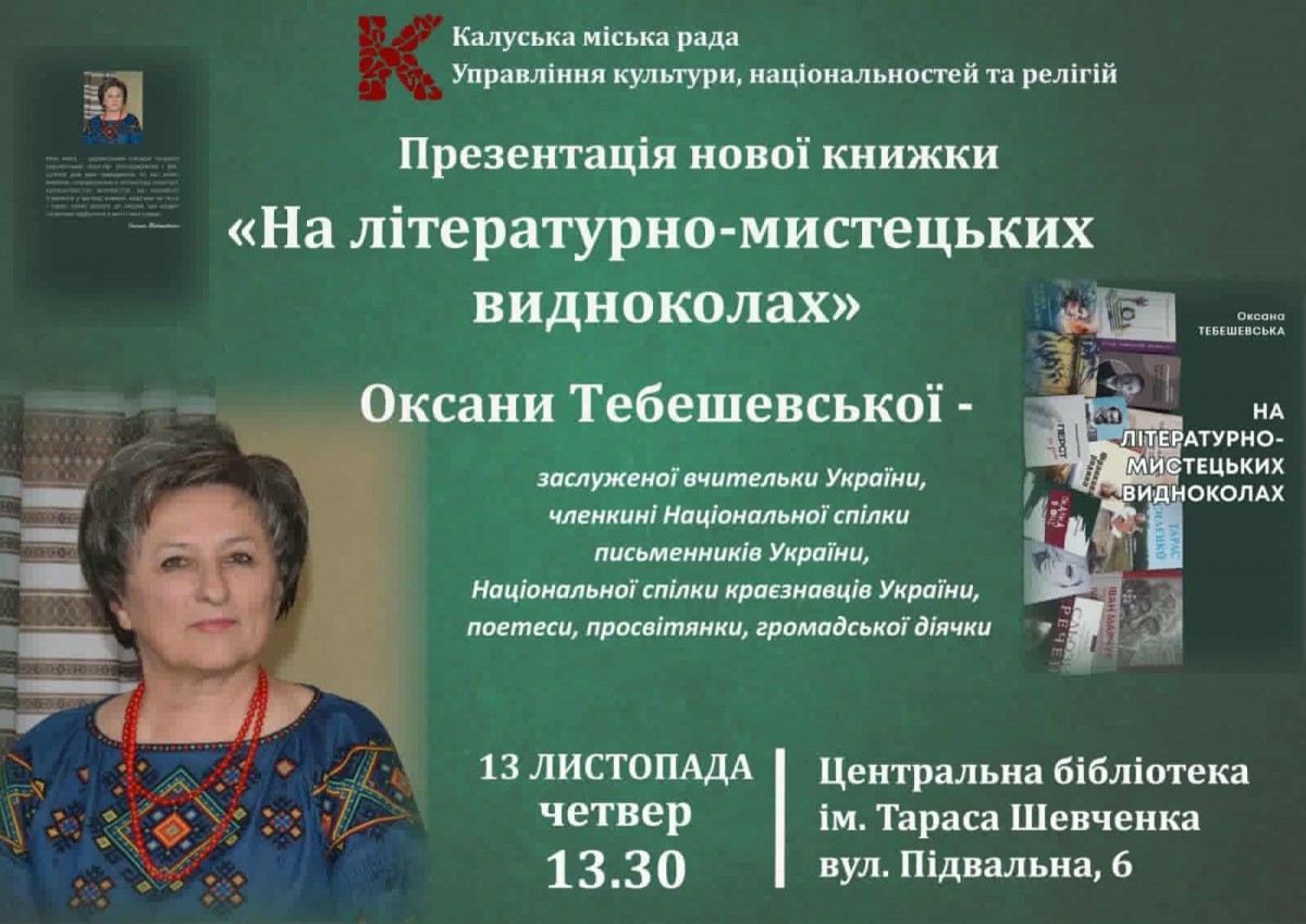 У Калуші відбудеться презентація нової книжки Оксани Тебешевської «На літературно-мистецьких видноколах».