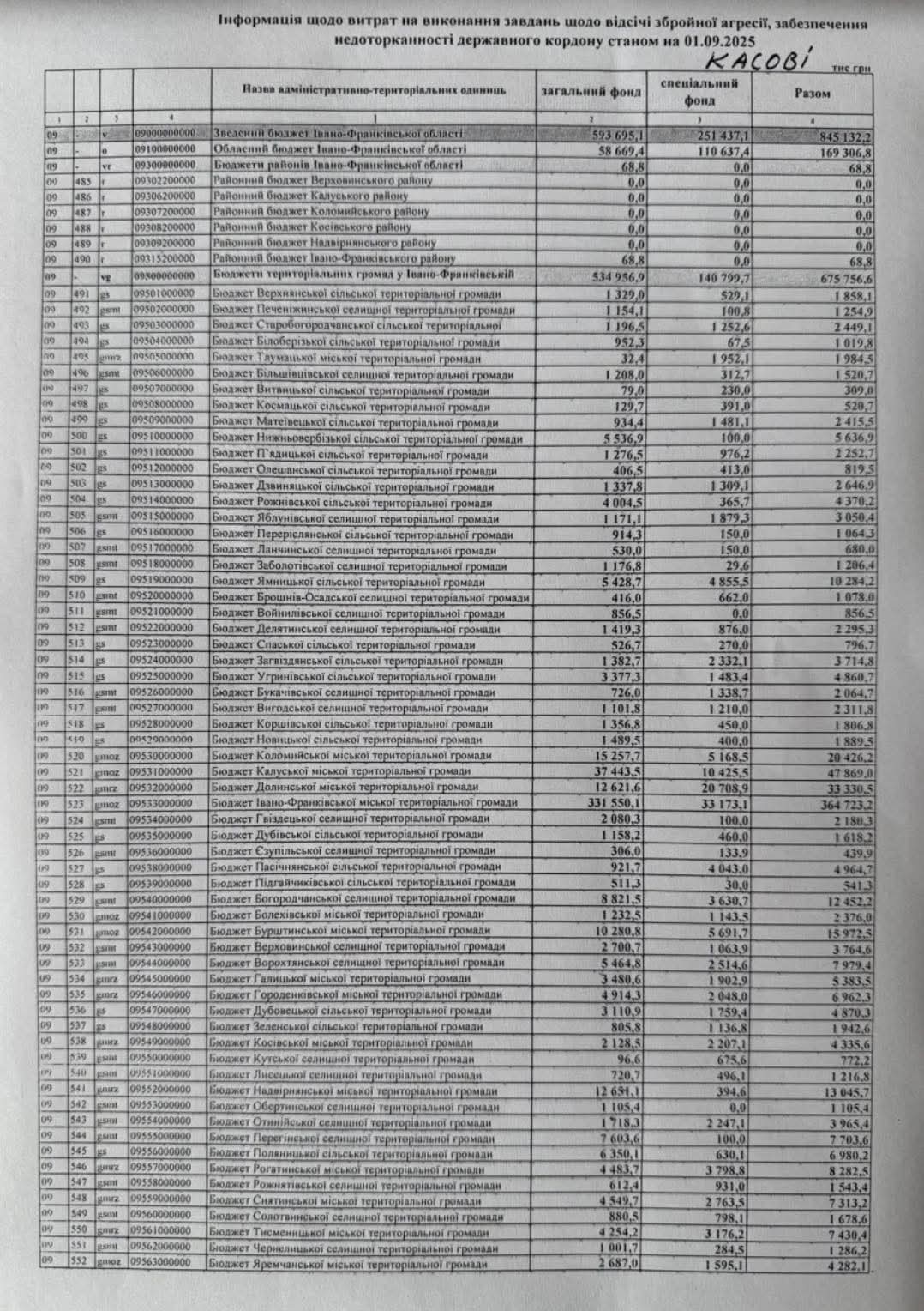 Із початку 2025 року місцеві бюджети Івано-Франківщини спрямували на виконання завдань щодо відсічі збройної агресії та забезпечення недоторканності державного кордону вже понад 845 мільйонів гривень. Про це йшлося на засіданні бюджетної комісії Івано-Франківської обласної ради.