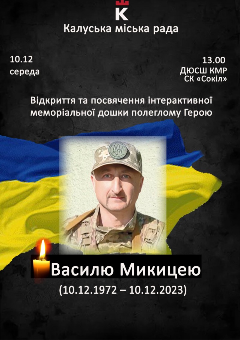 Відбудеться відкриття меморіальної дошки Герою